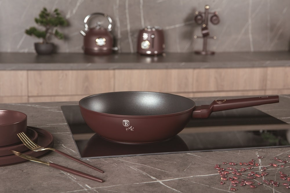 A Berlinger Haus Leonardo Collection edények egy stílusos és funkcionális edénycsalád matt bordó kivítelben. A darabok kovácsolt alumíniumból készülnek, és 3 rétegű TitanPro tapadásmentes bevonattal rendelkeznek, amely tartós, karcálló és segít az olaj minimalizálásában.