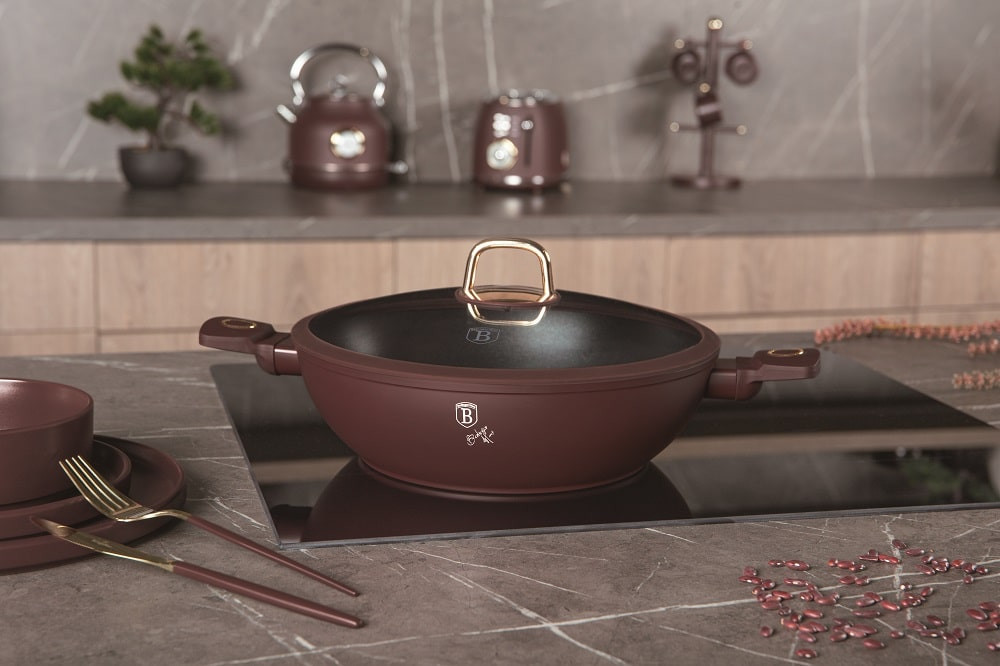 A Berlinger Haus Leonardo Collection edények egy stílusos és funkcionális edénycsalád matt bordó kivítelben. A darabok kovácsolt alumíniumból készülnek, és 3 rétegű TitanPro tapadásmentes bevonattal rendelkeznek, amely tartós, karcálló és segít az olaj minimalizálásában.
