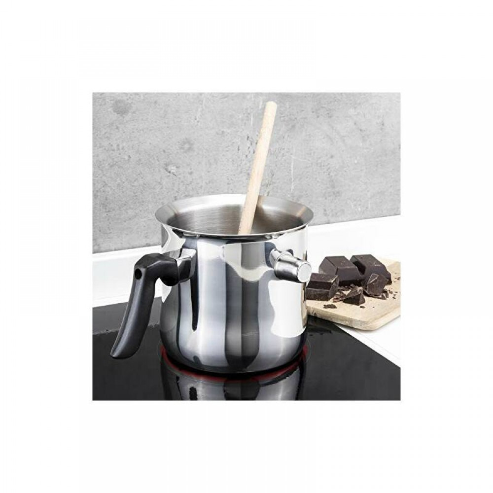 AKCENT rozsdamentes acél tejforraló fazék 1,5 l, dupla falú tejforraló fedő nélkül műanyag fogantyúval, külső oldala fényes, belső oldala matt.
